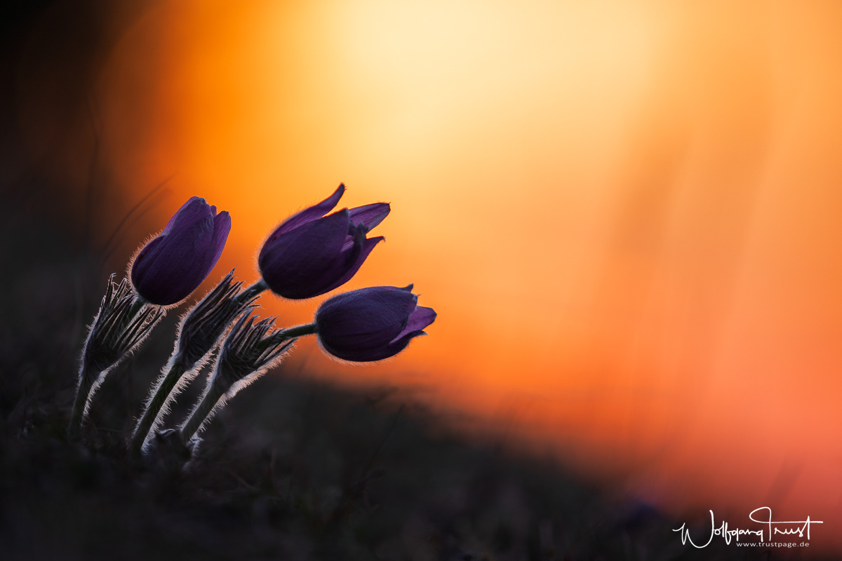 Küchenschellen im morgendlichen Gegenlicht