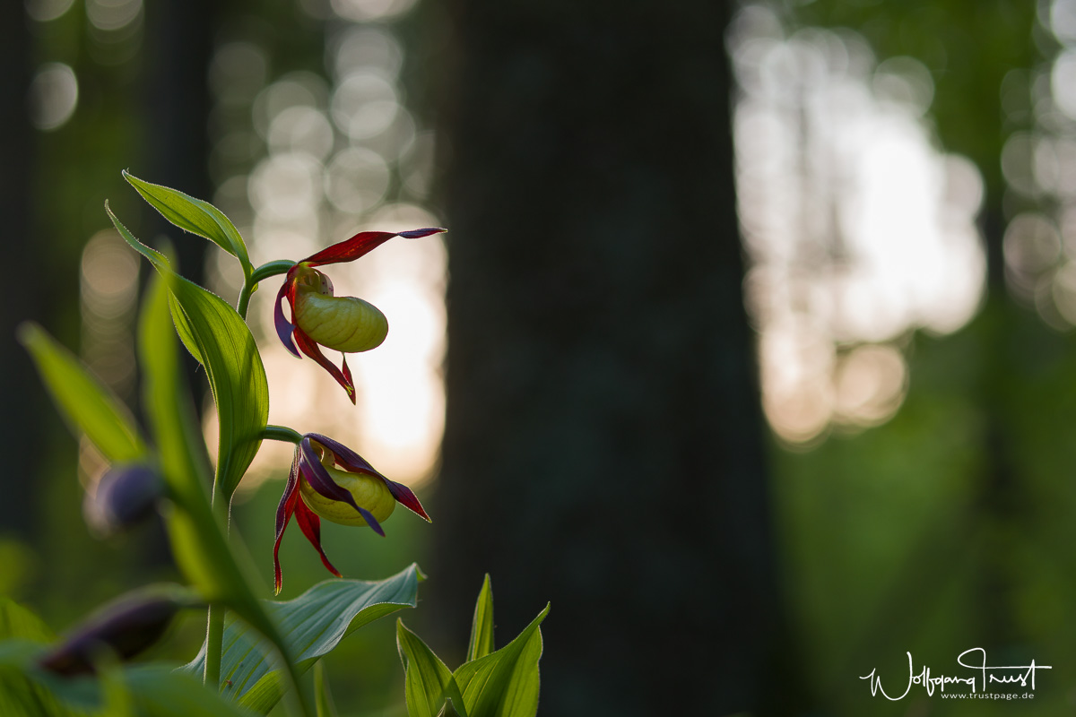 Frauenschuh vor Baumstamm