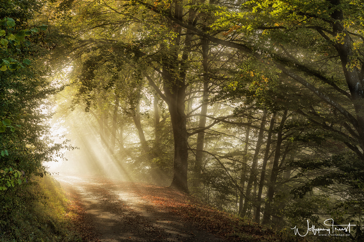 Sonnenstrahlen auf dem Waldweg