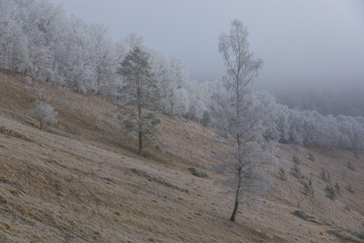 Birke und Kiefer am Hang