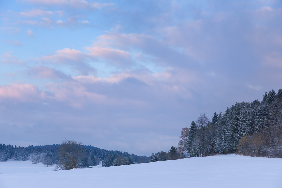 Wolkenfeld über Winterlandschaft bei Heidenstadt